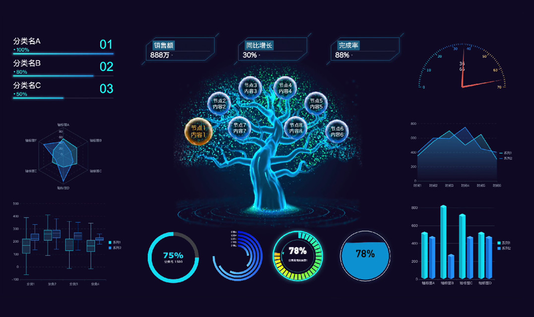 可轻松制作酷炫驾驶舱模板,发布到数据大屏集中管控 |